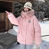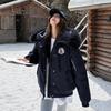 Women's Winter Hooded Cotton-Padded Parka with Stand-Up Collar and Badge Design