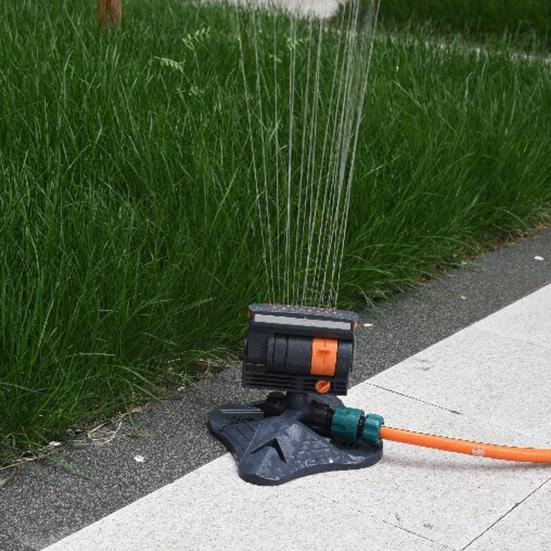 Introducing the lawn sprinkler, a versatile watering solution for your garden. With a rotatable flow adjustment knob, you can easily switch between mist and strong jet settings to cater to different watering needs. The four-speed mode allows you to choose from various spray modes like direct jet and fan jet, making it suitable for both precise watering of plants and quick coverage of large lawns. Equipped with 16 precision spray holes, this sprinkler ensures 360-degree watering without any blind spots. The fine and even water flow prevents puddling and regional drought, meeting high maintenance requirements. Its triangular pin design allows for easy insertion into the ground without the need for tools, making it ideal for uneven terrains.