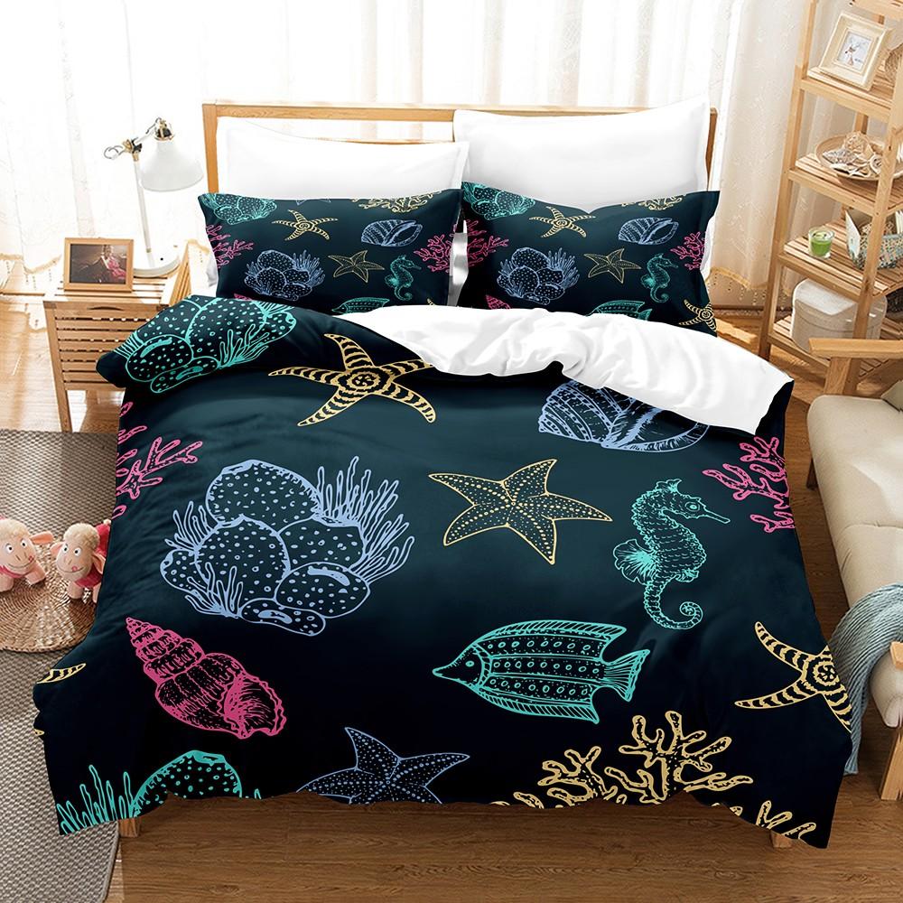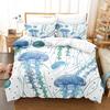 Soothing Underwater Theme Bedding Set 3D Print Quilt Cover Set 3PCS Soft Blue Mint Green Kids Sea Creatures Decor Home Suitable