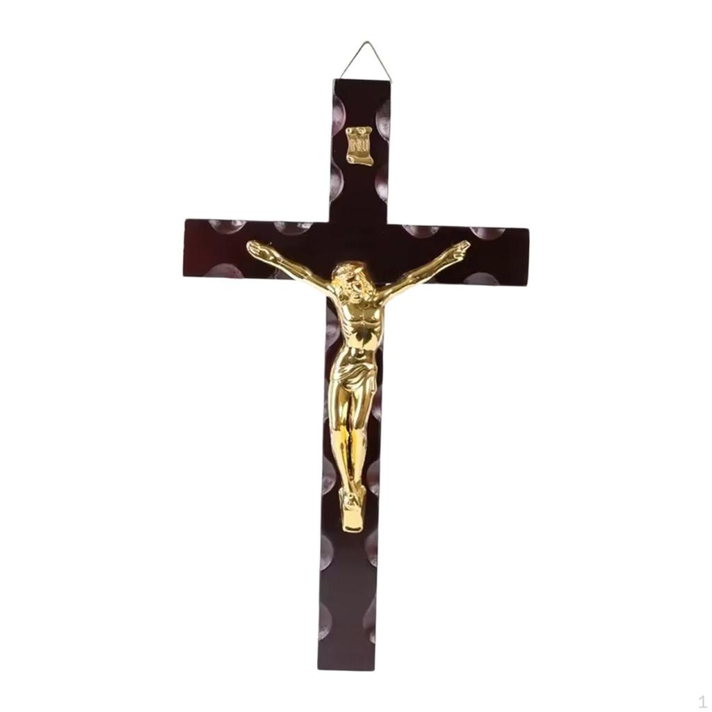 Wall Crucifix Cross Wood Jesus Sculpture Christian Figurine Pendant Religious Statue Home Decor