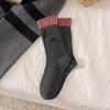 Female Spring and Autumn Lovely Cartoon Embroidery Bow Red Plaid Flanging Boneless Tube Socks