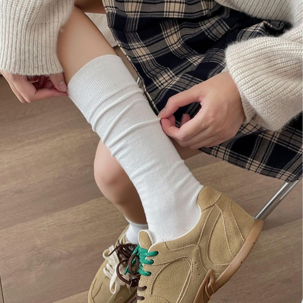 Female Autumn and Winter New Cotton Solid Color College Wind Calf Pile Socks