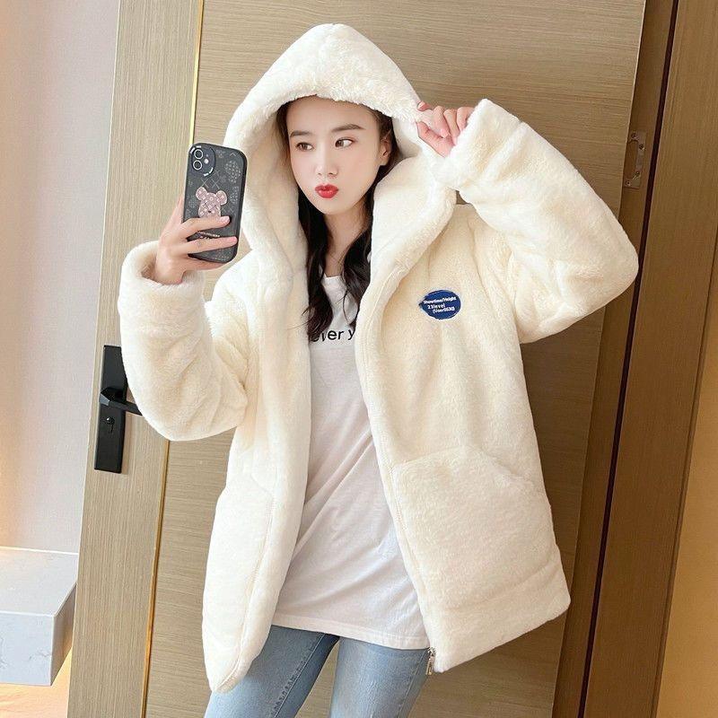 Autumn and Winter New Imitation Lamb Wool Thickened Loose Medium and Long Imitation Fur Coat Women's Plush Hooded Coat
