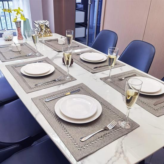 Elegant Design: Elevate your kitchen decor with the geometric minimalist print of this Flax Placemat. Its touch of elegance and beauty enhances any countertop effortlessly.
