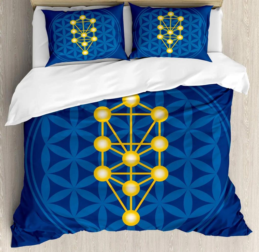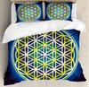 Flower of Life Duvet Cover Dark Blue with Geometry Print Quilt Cover for Children Teens Adults for Bedroom Decoration Queen Size
