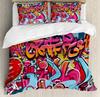Hip Hop Decor Duvet Cover Colorful Bedspreads Cover Graffiti Pattern Street Culture Theme Decor Bedding Set for Adult Kids Teen