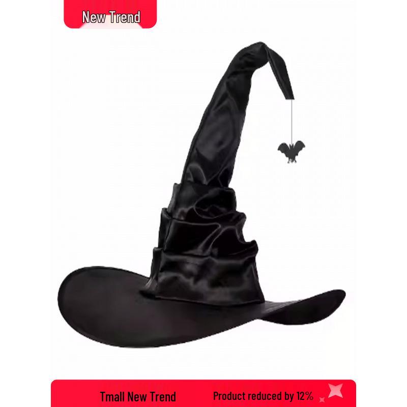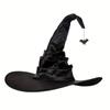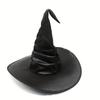 Black Pleated Witch Hat Costume Prop - One Size for Halloween Parties