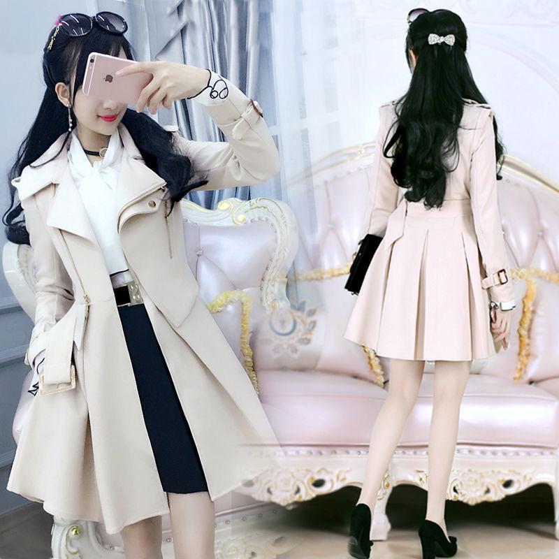 Women's Beige Fleece-Lined Trench Coat: British & Korean Style, Thickened, Long-Sleeved, Mid-Length, Autumn/Winter Warm & Stylish.
