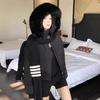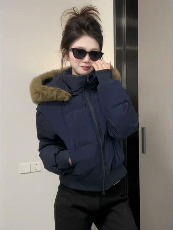Women's Winter Retro Navy Blue Hooded Cotton-Padded Jacket - Thick & Warm Design