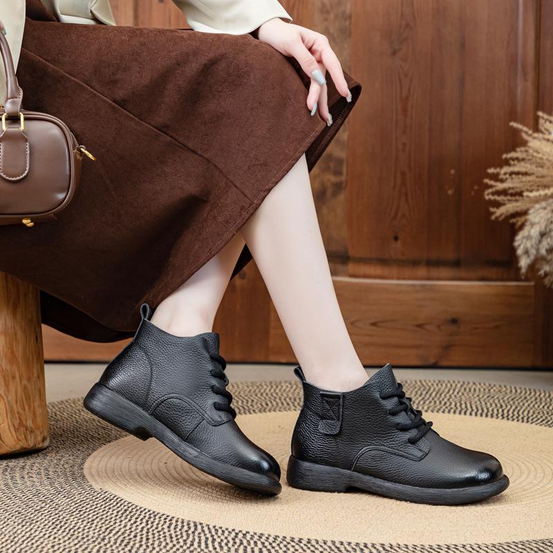 Short Boots Autumn/winter New Flat Bottom Short Boots Versatile Retro Boots Soft Leather Soft Sole Casual Women