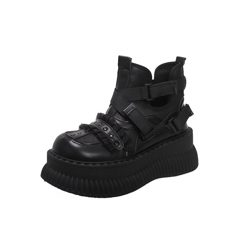 Goth Boots Woman Trend Platform Heels Stylish Lolita Black Short Barrel Round Toe Girl's Boot Cosplay Booties Elegant Party