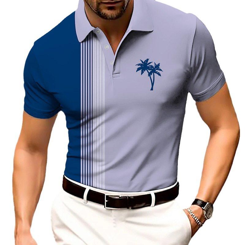 Men Polo Shirt Coconut Tree Stripes Short Sleeve 3d Print Tops Fashion Polyester Breathable Comfortable Polos Shirts