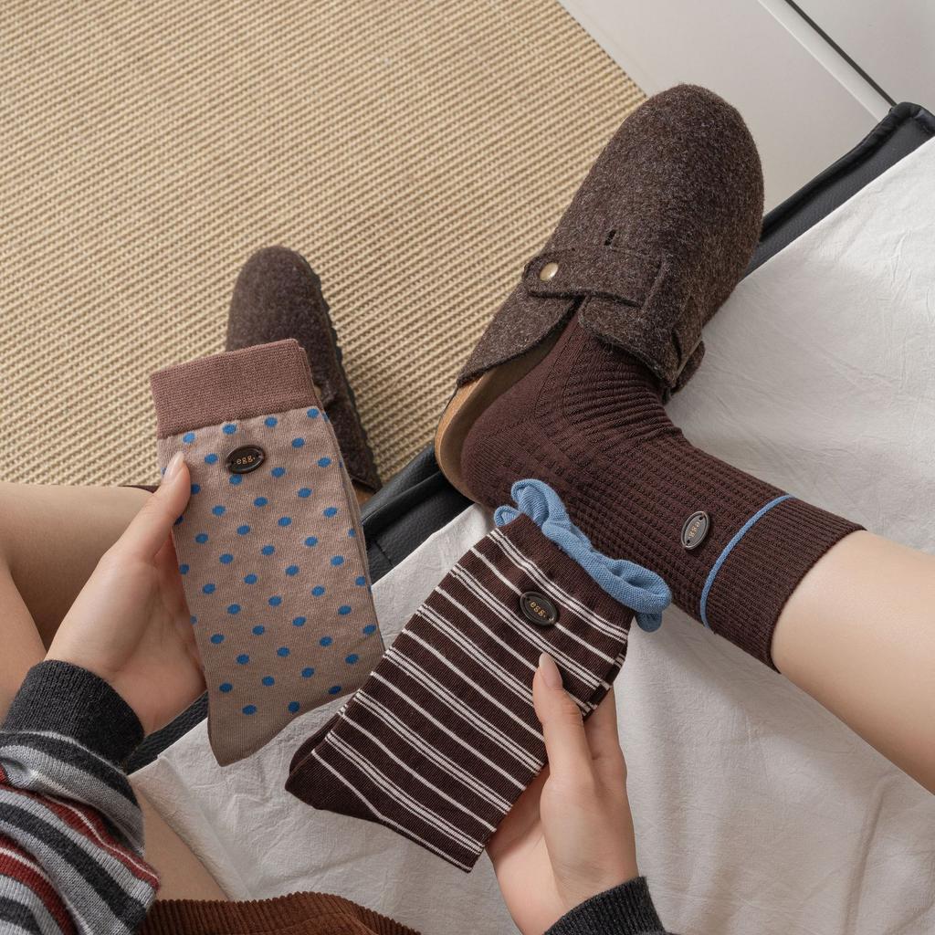 Female Autumn and Winter Retro Stripes Polka Dot Buttons In Color Tube Stack Socks