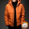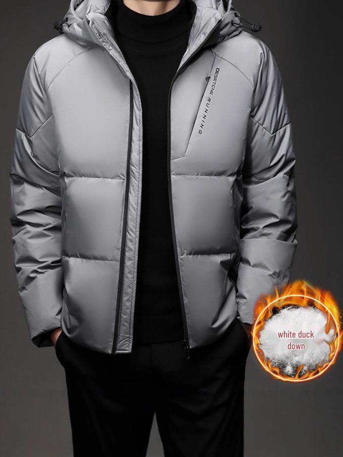 Stay warm and stylish this winter with this men's hooded down jacket. Designed for a regular fit, this jacket features a stand neckline and an insulated thickness to keep the chill at bay. Filled with premium duck down, it ensures superior warmth and comfort. The exterior is crafted from durable polyester material, while the hood is lined with a luxurious, chemical fiber blended faux fur. The jacket is adorned with a subtle letter decoration, adding a touch of modern flair to your casual winter wardrobe. Perfect for those who appreciate both functionality and fashion.