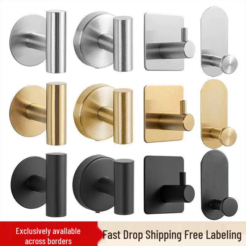 Punch-Free Stainless Steel Hooks - Strong Adhesive for Kitchen & Bathroom Storage Organizing Backpacks, Hats, Headbands.