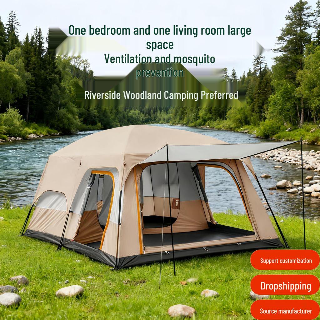 Outdoor Camping Tent: Large, Portable, Sun-Protected, Rainproof, 2 Rooms + Living Area, Fits 8-12 People