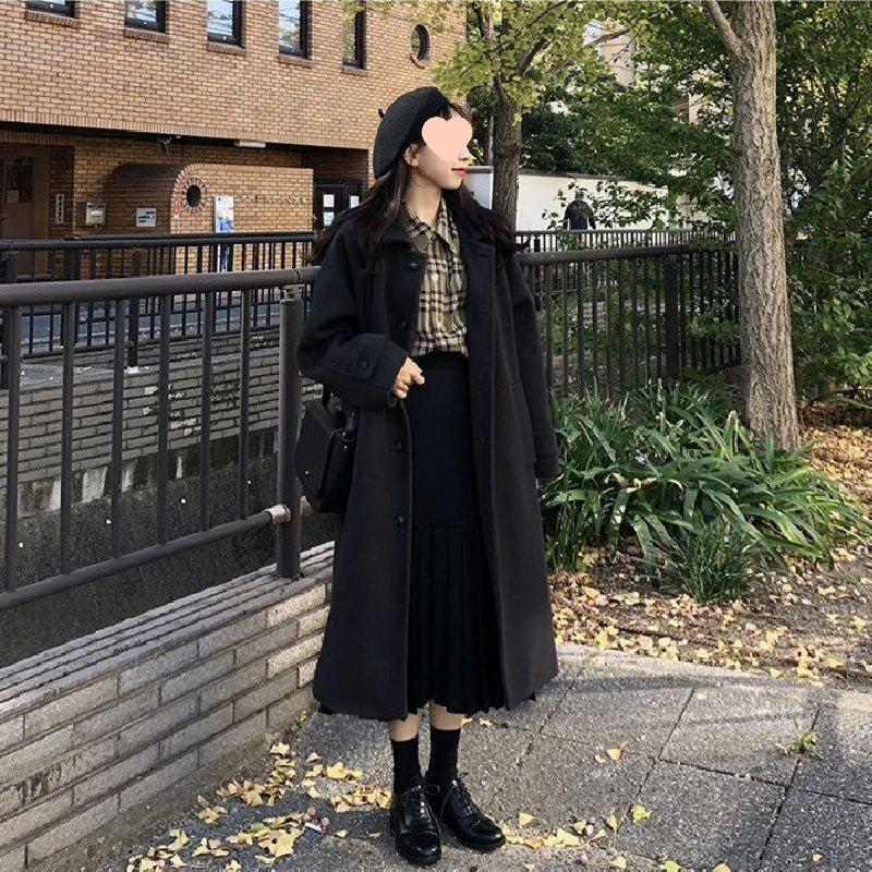 Women's Mid-Length Woolen Coat: Spring/Summer, Korean Style, Loose Fit, Versatile, Petite, Cotton-Enhanced