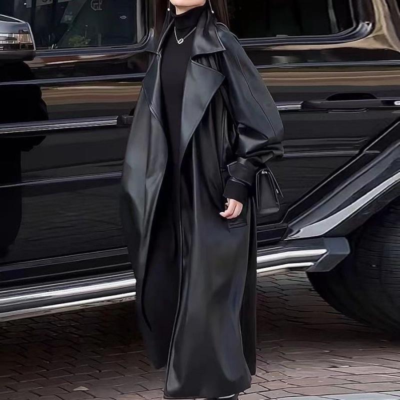 2024 High-End Autumn Dark Goth Over-the-Knee Leather Women's Jacket