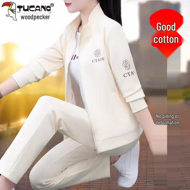 Women's Autumn Spring Cardigan Tracksuit Set - Fashionable, Age-Reducing, Versatile Three-Piece Outfit