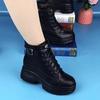 Women's Genuine Leather Non-Slip Height-Increasing Fleece-Lined Winter Snow Boots