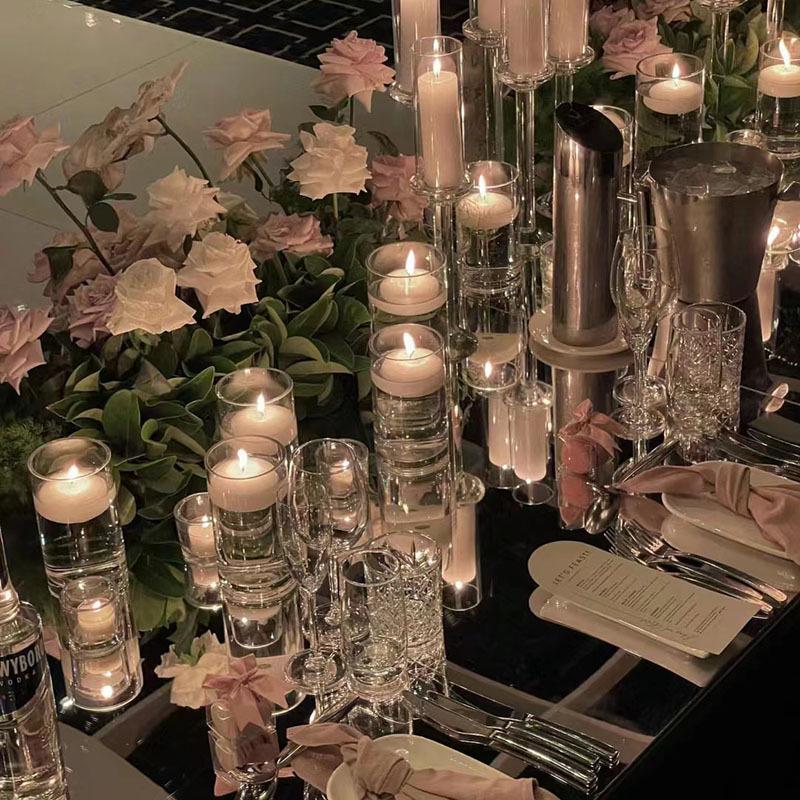 Glass Candle Holders for European Romantic Dinner, Wedding, Birthday, or Hotel Events - Floating Water Candles Included
