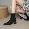 Step into elegance with these chic ankle boots, crafted from genuine suede for a luxurious touch. Designed specifically for women, these boots feature a pointed toe and a slimming silhouette that perfectly complements any autumn or winter ensemble. The sturdy chunky heel offers both style and stability, while the durable rubber sole ensures a comfortable and secure fit. Ideal for any occasion, these boots effortlessly blend sophistication with practicality.