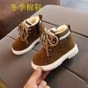 Boys Martin Boots Fleece Children's Fly Knitting Autumn and Winter Large Cotton Thickened Children's Single Boots Girls Shoes Warm Baby Shoes
