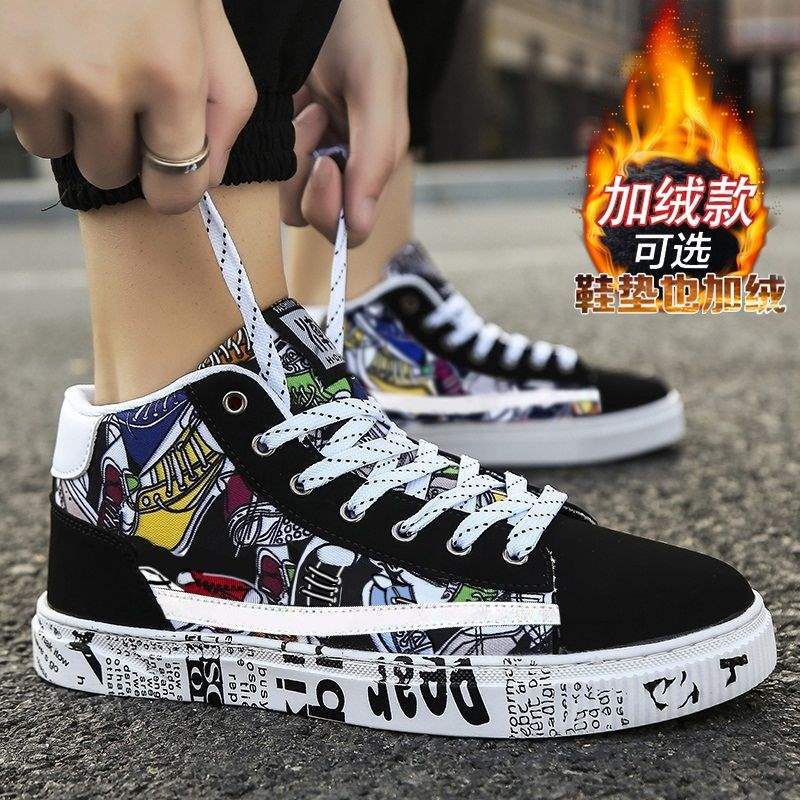 Men's Shoes Winter Trend High-top Canvas Shoes Men's Students Board Shoes Men's Velvet Cotton Shoes Sports and Leisure Shoes Men's