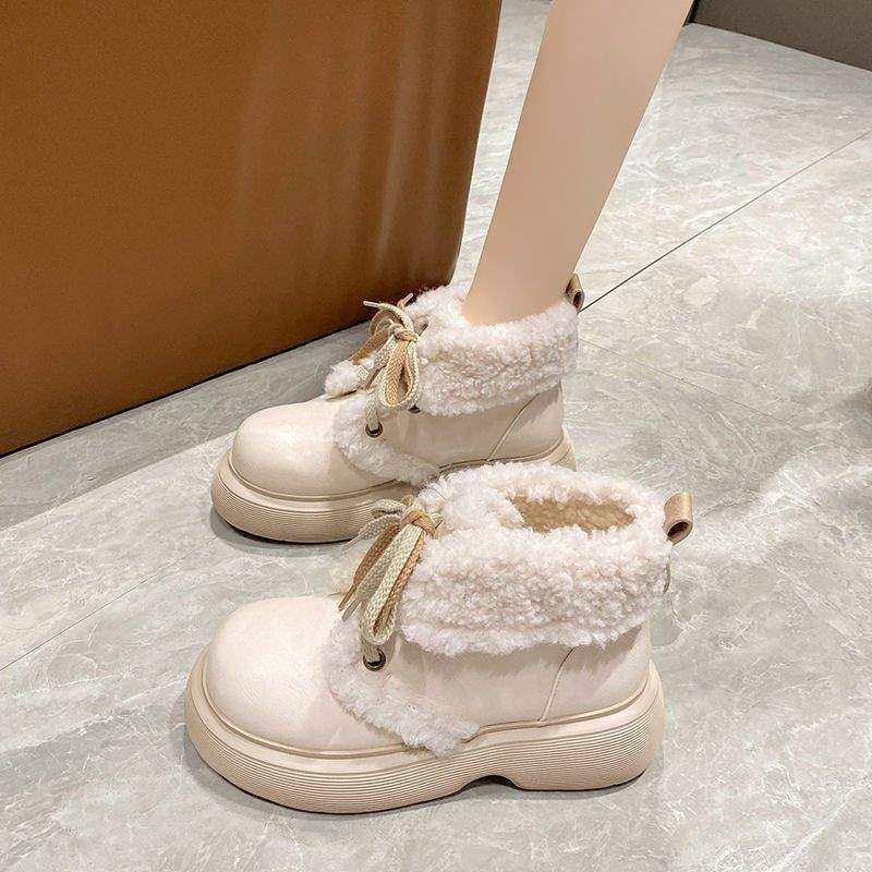 Snow Boots Women's 2025 Autumn and Winter Retro Velvet Short Boots Casual Warm Platform Cotton Shoes Bow Cold Shoes Children