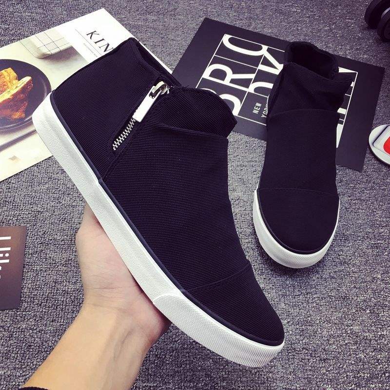 Boys Board Shoes Korean Version of High-top Espadrilles Side Zipper Foot Cover Black Teen Tide Student Winter Velvet Cotton Shoes
