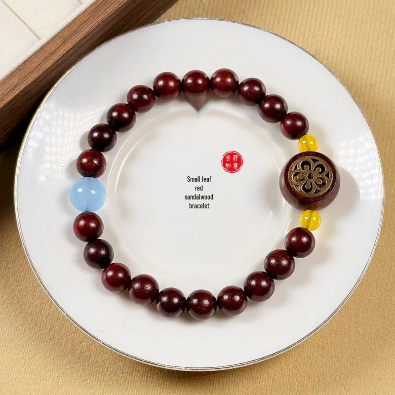 Red Sandalwood & Boxwood Openwork Plum Blossom Bracelet, Retro Chinese Style for Men & Women.