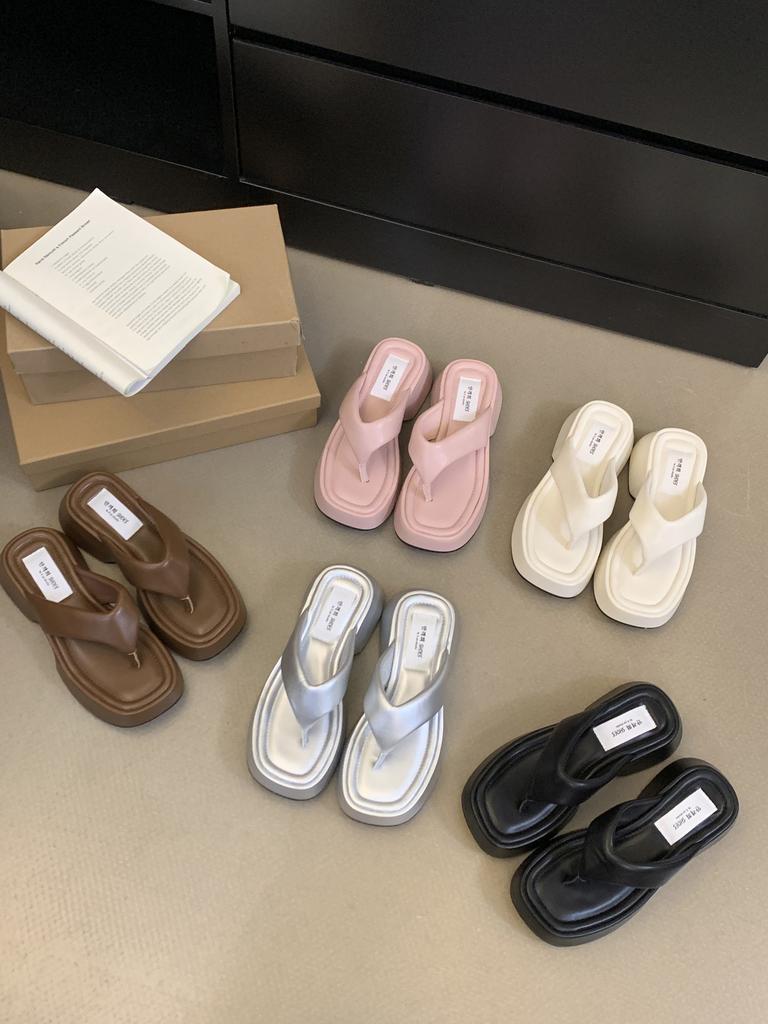 2025 Summer Fashion Thick-soled Cross-strapped Cool Slippers Women's Shoes Wear Versatile Height Increase Internet Celebrity Beach Muffin Slippers