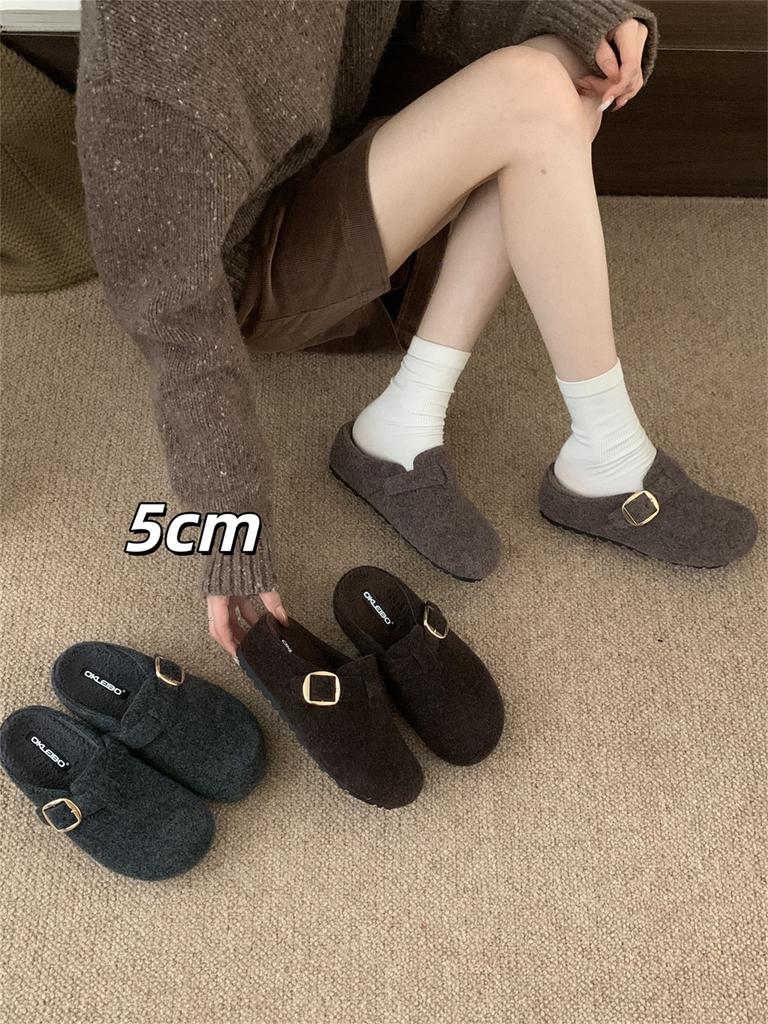 Inner Height Increase Gray Fluffy Shoes Women Wear New Thick-soled Birkenstocks with Velvet Bag Head and Half-drag Cotton Shoes In Autumn and Winter