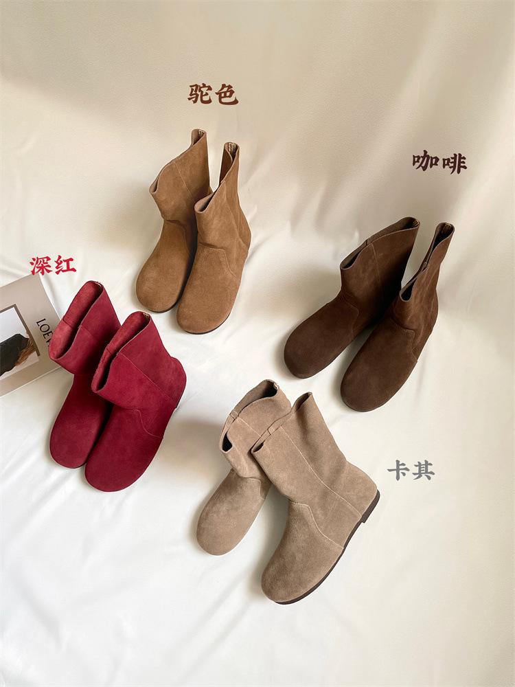 Korean Version of Flat-bottomed Round-headed Short Boots Women's Boots 2025 Autumn and Winter New Fashion Versatile Martin Boots