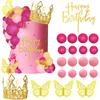 Balls Cake Toppers Happy Birthday Crown Tiara Cake Toppers for Birthday Wedding Baby Shower Party Decorations