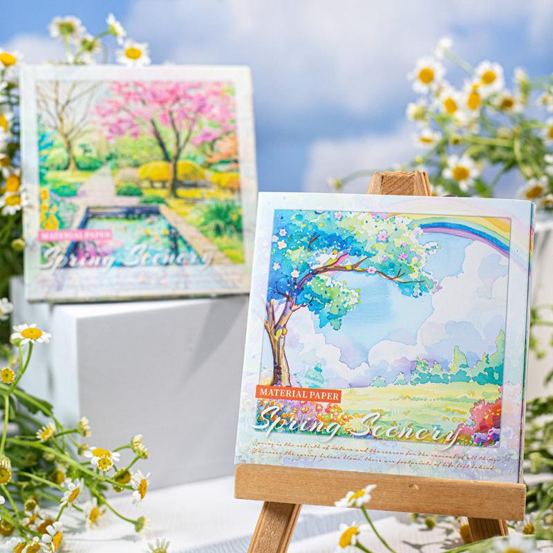 30sheets/bag Material Paper Spring Watercolour Landscape Handbook Stationery DIY Handmade & Scrapbook Journal Decoration