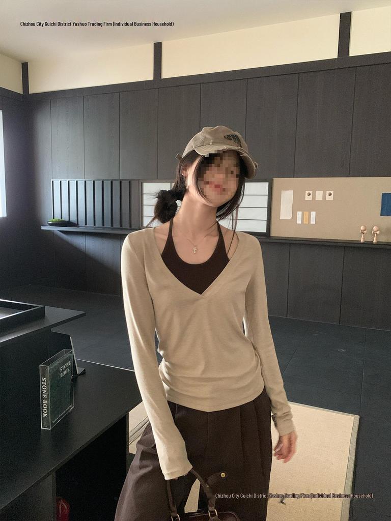 Women's Korean-Style Long-Sleeve Autumn T-Shirt - Elegant and Stylish Base Layer