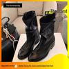 Women's 2025 Autumn/Winter Retro Western V-Cut Round Toe Mid-Calf Chunky Heel Boots