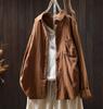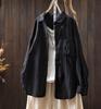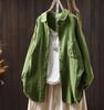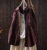 Johnature Women Vintage Shirts Tops Turn-down Collar Patchwork Pockets Blouses Autumn Solid Color Shirts