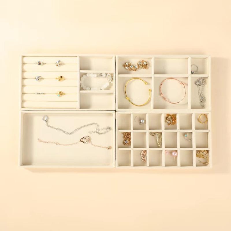 Velvet Jewelry Display Tray With Multi Compartments For Rings Earrings Bracelets Necklaces Storage Box Organizer Case