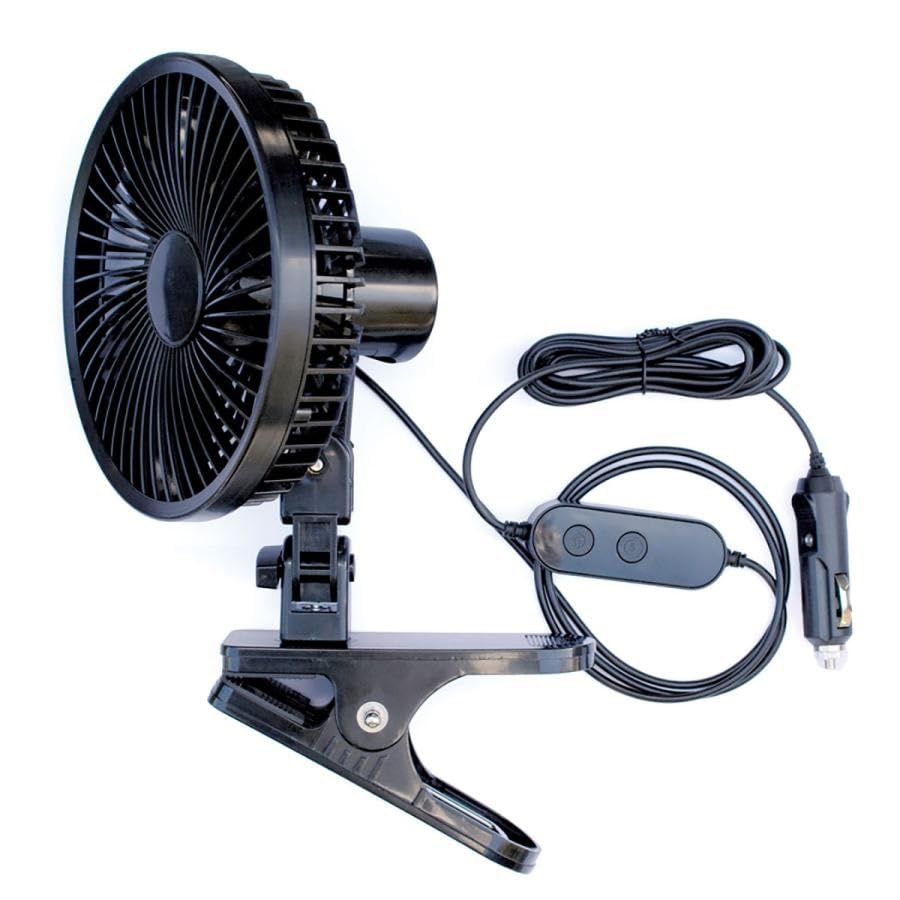 This is a quiet, car-specific (12V) fan that can be adjusted to strong, medium, or weak wind speeds, has an automatic swing function, and can also be adjusted up and down.