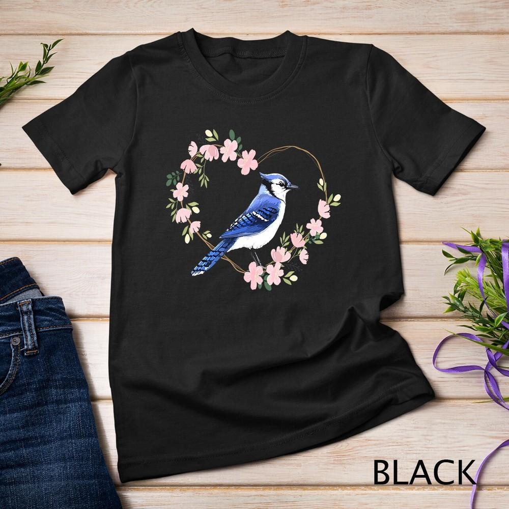 Bird Bird Watching Bird Watcher Birder Blue Jay Flower Heart Unisex T-shirt