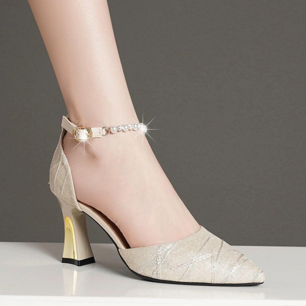 Experience elegance and comfort with these stunning one-strap stiletto heels, perfect for summer events and fashionable outings. Crafted with a luxurious satin upper material, these sandals are adorned with intricate beading that adds a touch of glamour to your look. The pointed toe design enhances sophistication, while the wear-resistant rubber sole ensures durable traction. Inside, the shoes feature a combination of premium leather and microfiber linings for added comfort and breathability. Ideal for elevating any outfit, these heels embody both style and practicality, making them a must-have for your wardrobe.