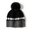 Cashmere Autumn and Winter New High End Women's Color Blocked Diamond Shaped Twisted Wool Warm and Fashionable Knitted Casual Hat