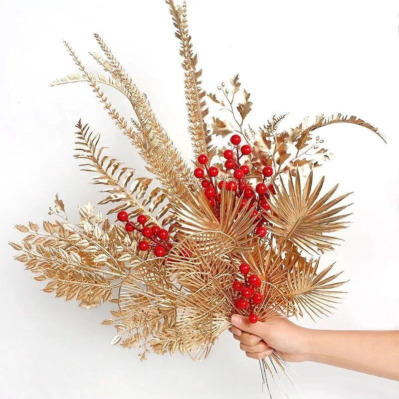 1/3/5Pcs Maple Leaves Gold Artificial Flowers Eucalyptus Home Decoration Outdoor Party DIY Tree Branch Accessories Wedding Decor