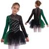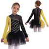 Kids Dance Costume Long Sleeve Color Block Patchwork Dress with Sparkling Rhinestones for Performance