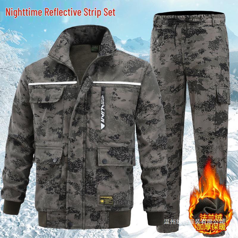 Men's Winter Camouflage Workwear Suit - Cotton, Thick, Fleece-Lined, Warm, Wear-Resistant Labor Protection Outfit.