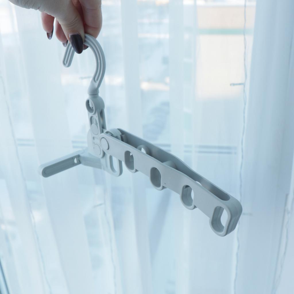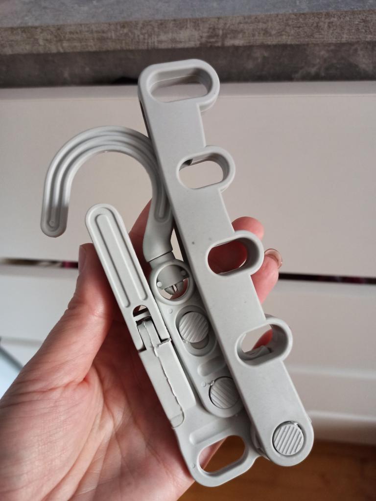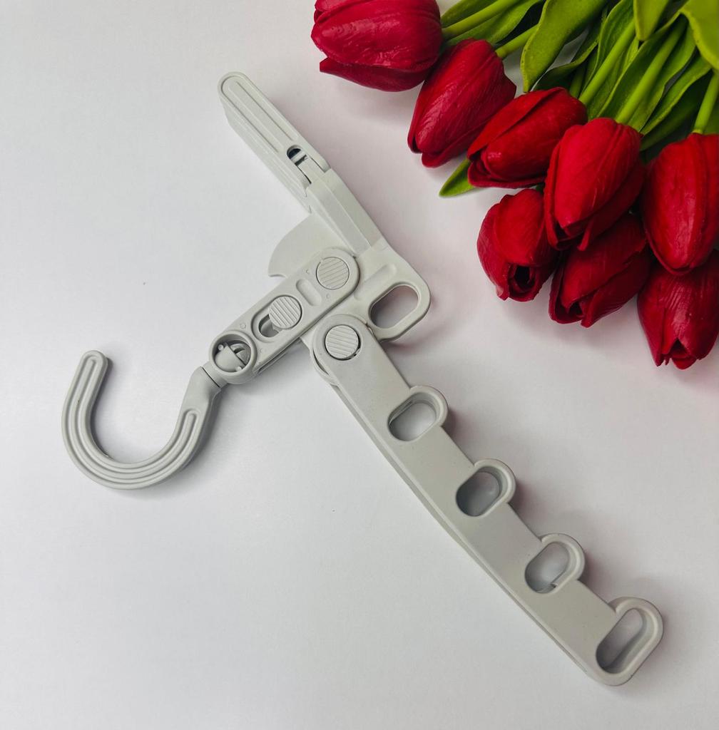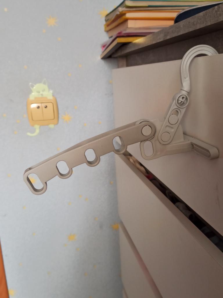 The foldable hanger with 5 holes is a smart and efficient space-saving solution, especially for those who need convenient organization at home, in dorms, or while traveling. The foldable design allows for easy storage when not in use, and it takes up almost no space in a suitcase or closet.. The hanger is made of a durable and strong material, so it can hold clothes stably without bending or breaking. The five holes allow hanging multiple items simultaneously, which helps with quick drying and maintaining order.. This is an especially useful product for travel, because you can take it anywhere and use it to dry clothes in hotel rooms, and also at home it helps to better utilize the space in the closet. A practical, convenient solution and recommended for anyone who wants efficient organization and space saving.