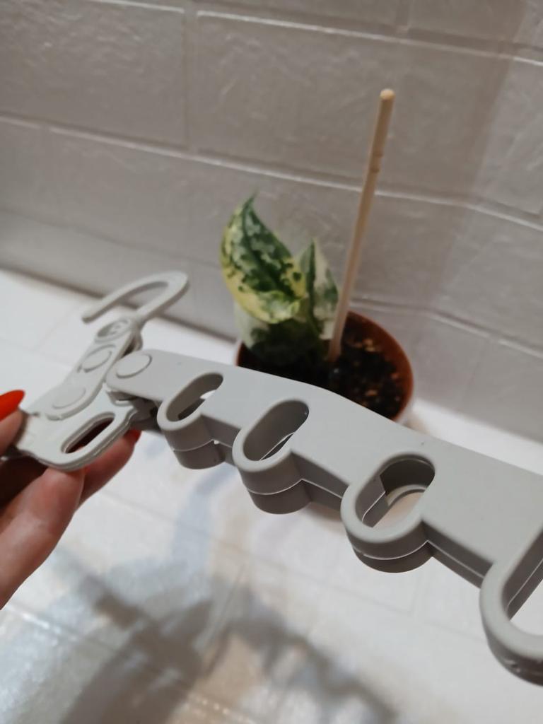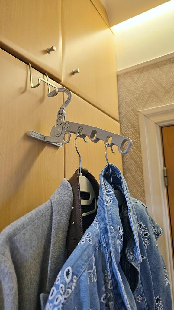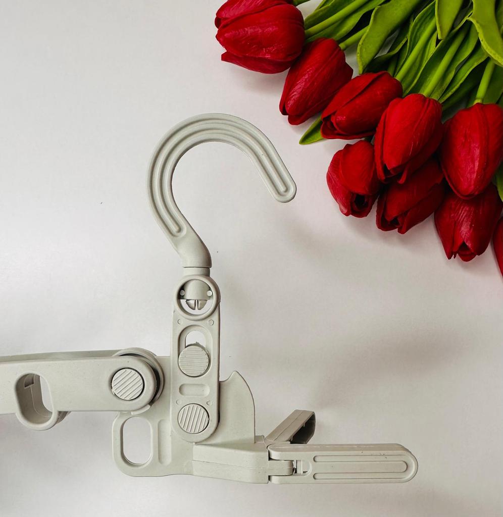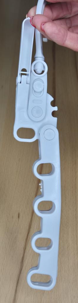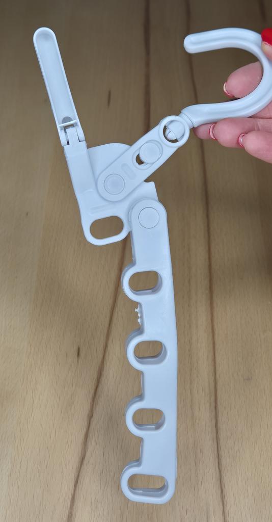 The foldable hanger with 5 holes is a smart and efficient space-saving solution, especially for those who need convenient organization at home, in dorms, or while traveling. The foldable design allows for easy storage when not in use, and it takes up almost no space in a suitcase or closet.. The hanger is made of a durable and strong material, so it can hold clothes stably without bending or breaking. The five holes allow hanging multiple items simultaneously, which helps with quick drying and maintaining order.. This is an especially useful product for travel, because you can take it anywhere and use it to dry clothes in hotel rooms, and also at home it helps to better utilize the space in the closet. A practical, convenient solution and recommended for anyone who wants efficient organization and space saving.