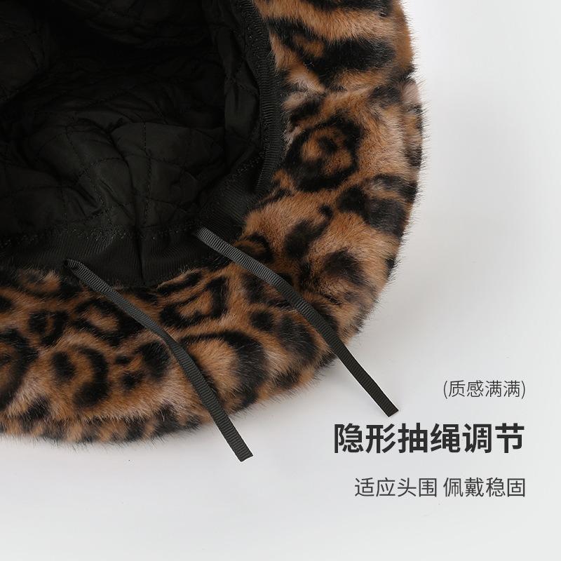 Imitation Mink Leopard Print Bucket Hat Women's Plain Face Hat Autumn and Winter Warm and Cold Leisure Fashion Basin Hat